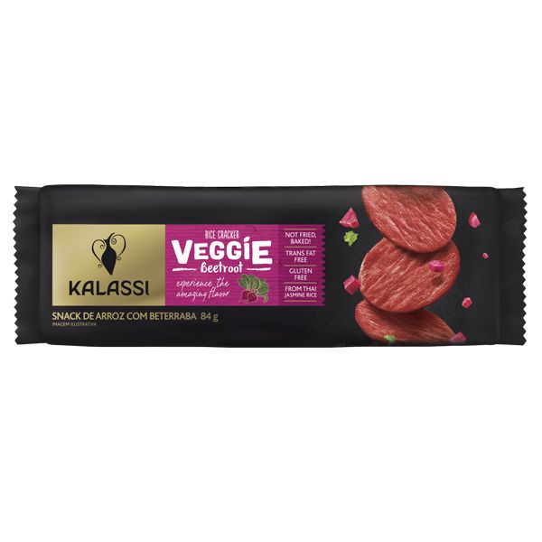 Biscoito à base de arroz Thai Jasmine, de origem tailandesa, com delicioso sabor de beterraba. Assado e vegano, não contém gordura trans e é uma ótima opção de snack.